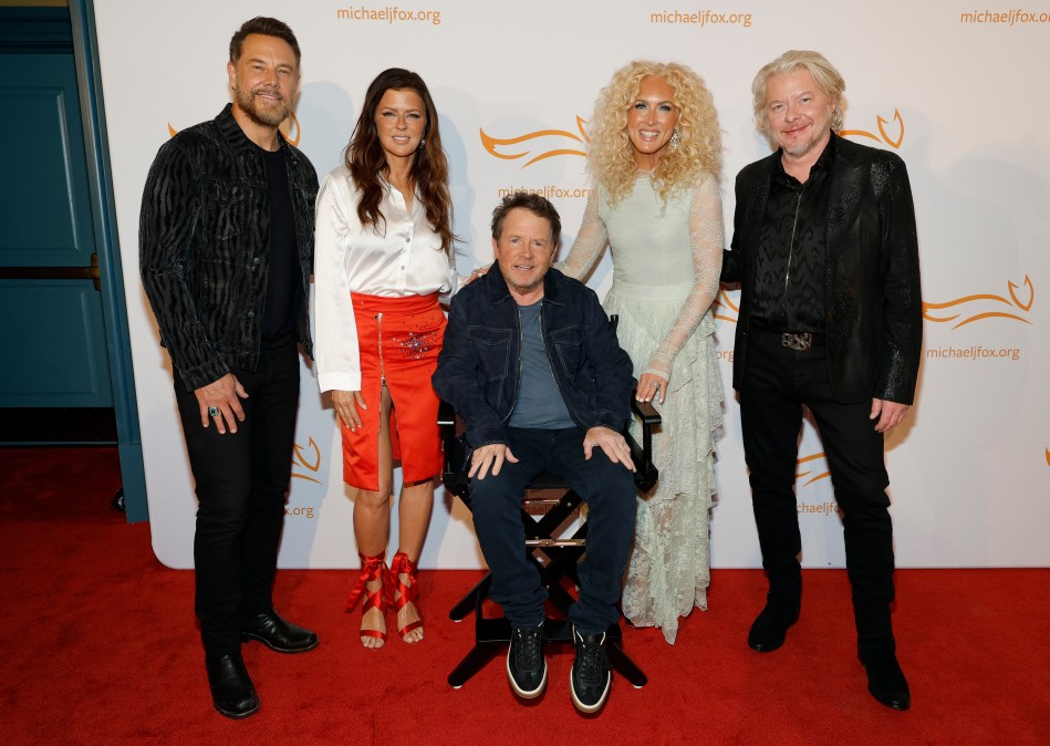 GettyThe event is to help raise funds for Parkinson’s disease research. In the photos, Fox is seated in a chair while posing with some of the attendees. A group photo includes Fox, Jimi Westbrook, Karen Fairchild, Kimberly Schlapman, and Phillip Sweet.