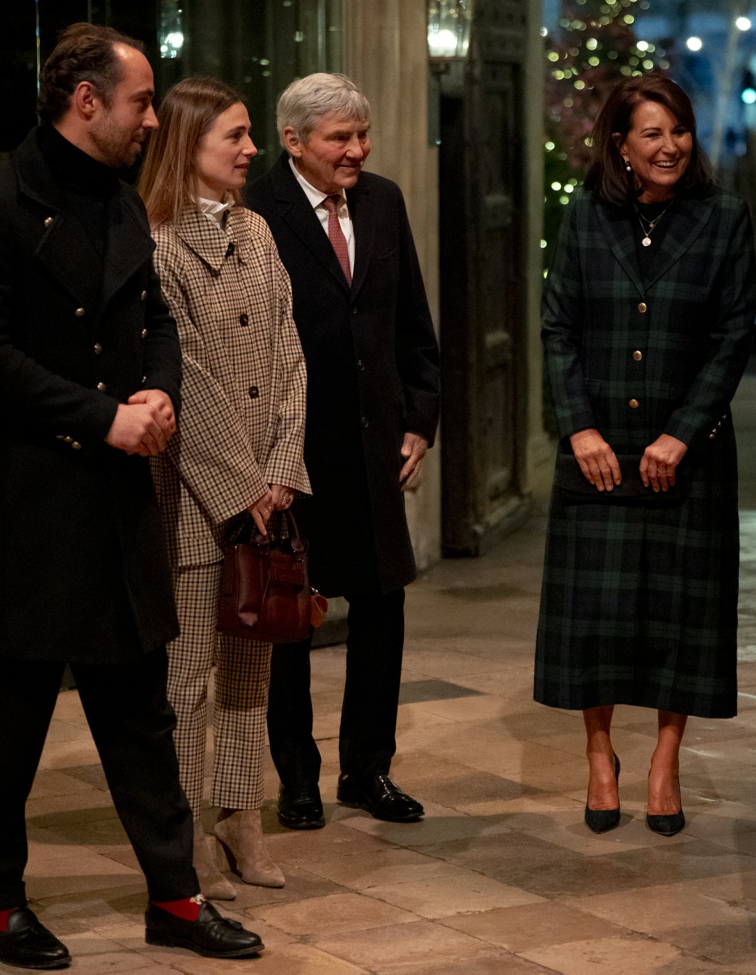 Fashion-wise, it was an okay night for Kate. She repeated a Catherine Walker coat in dark green with faux-fur trimming. Her boots are Ralph Lauren, and her custom earrings were made by Robinson Pelham, called Tsar Stars. They would retail for £11,195. What’s one of their favorite criticisms about Kate’s sister-in-law? Something about wearing nice jewelry is bad because it proves her inauthenticity and elitism. The kids and Prince William were all coordinated in navy, and then George wore a green tie to “match” his mom.