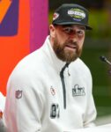 Kelce laughed at the reference to his fiancée, Swift, claiming, “Well, it’s only been two and a half years, and you’re right. I haven’t gotten into an argument. Never once.”