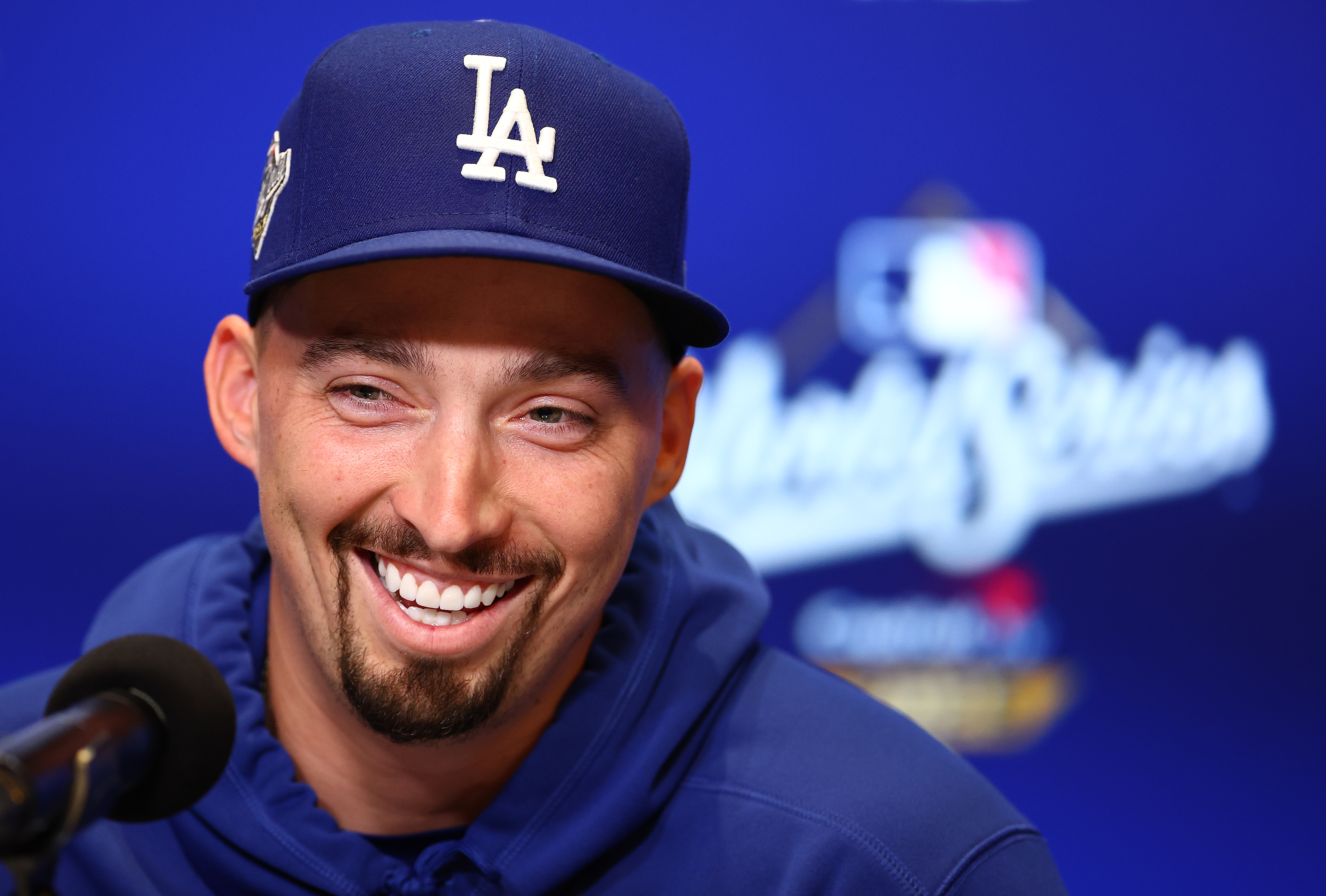 GettyBlake Snell #7 of the Los Angeles Dodgers speaks to the media during World Series Workout Day at Rogers Centre on October 23, 2025 in Toronto, Ontario, Canada.