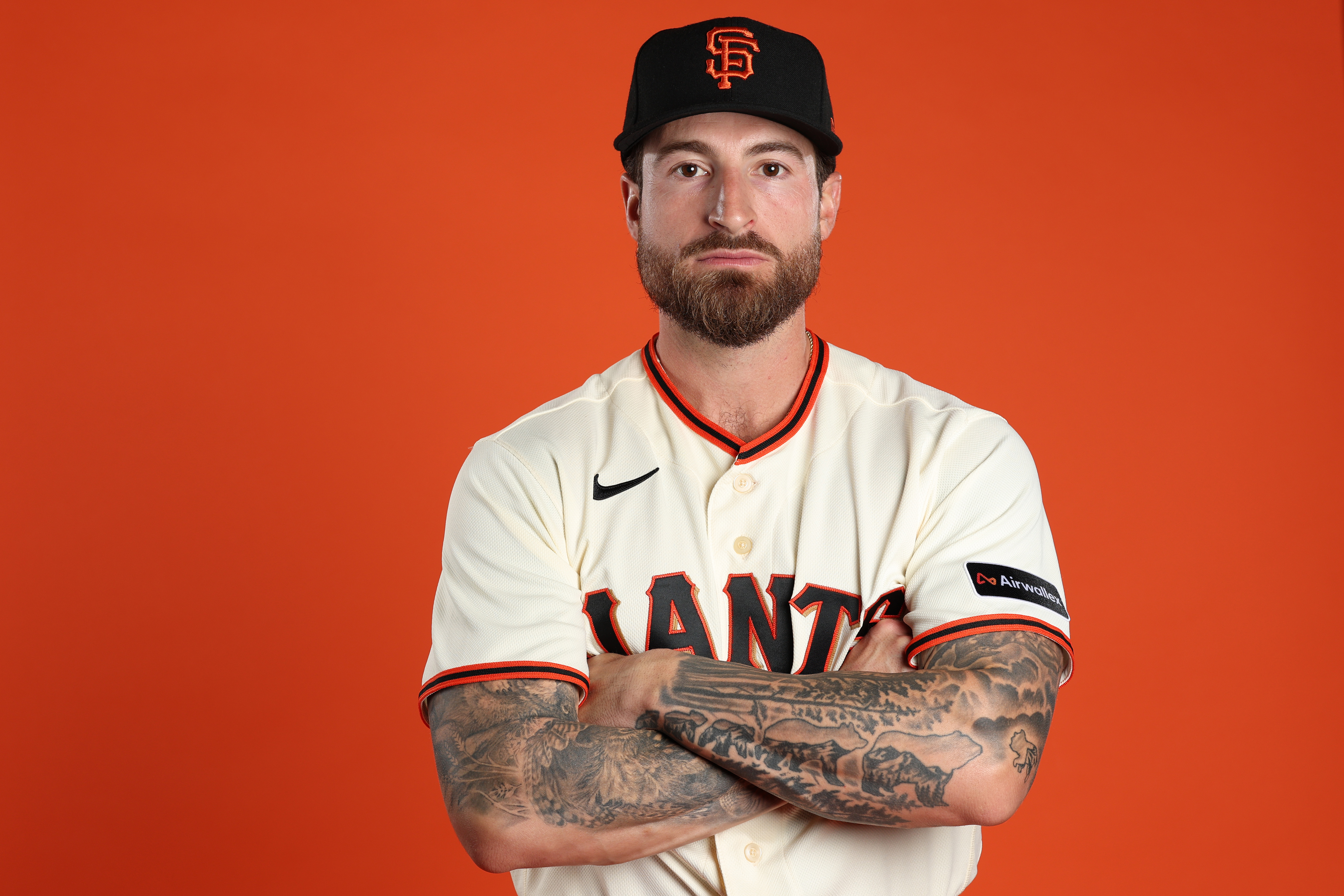 GettyEric Haase #18 of the San Francisco Giants poses for a portrait during photo day at Scottsdale Stadium on February 19, 2026 in Scottsdale, Arizona.